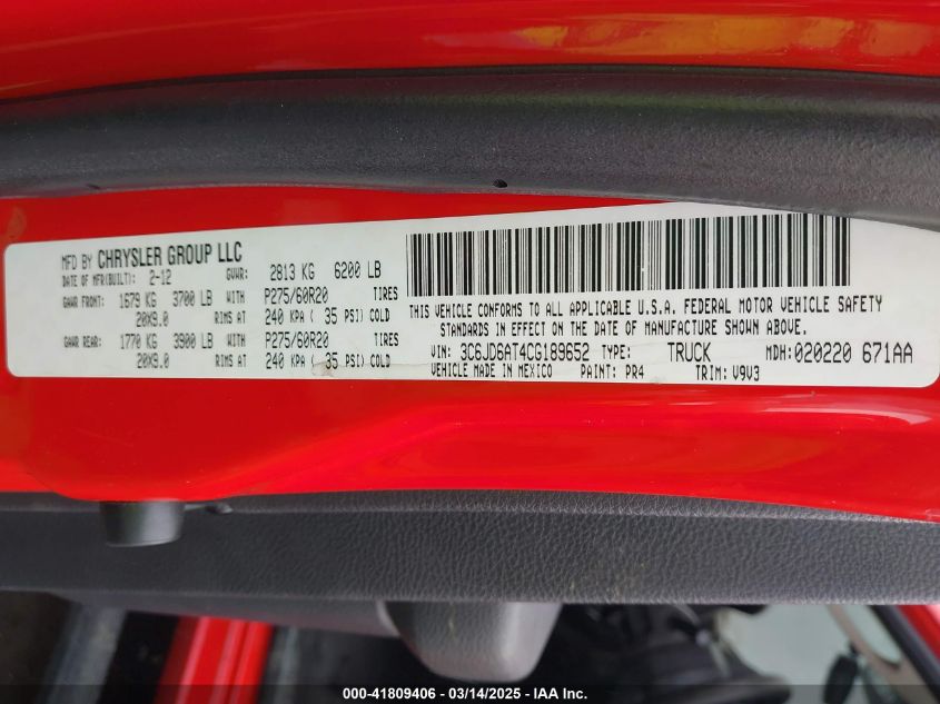 Color RedCylinders 8Drive UnknownVIN 3C6JD6AT4CG******State Run & Drive VerifiedDamage Front right
