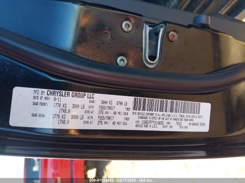 Color BlackCylinders 8Drive Full driveVIN 1C6RD7FP7CS******State Run & Drive VerifiedDamage Front or back