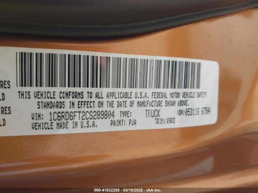 Color OrangeCylinders 8Drive UnknownVIN 1C6RD6FT2CS******State Run & Drive VerifiedDamage Insignificant