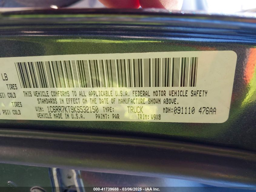 2019 RAM 1500 2019 Gasoline, 5.7, Full drive, VIN - 1C6RR7KT9KS****** from the USA