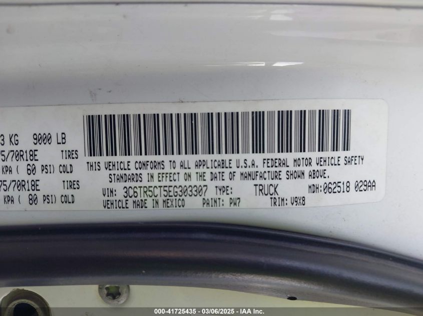 Color WhiteCylinders 8Drive Full driveVIN 3C6TR5CT5EG******State Run & Drive VerifiedDamage Front or backAuction date 2025-03-25