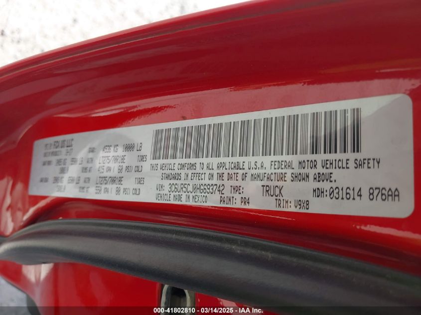 Color RedCylinders 8Drive Full driveVIN 3C6UR5CJ0HG******State Run & Drive VerifiedDamage Left side