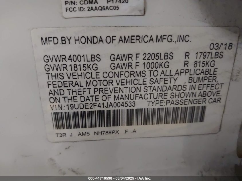 Цвет БелыйЦилиндры 4Привод Передний приводVIN 19UDE2F41JA******Состояние НеизвестноПовреждения Задняя AutoRIA