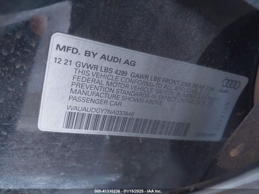 2022 AUDI A3 2022 року Бензин, 2.0, Передний привод, vin - WAUAUDGY7NA****** из США