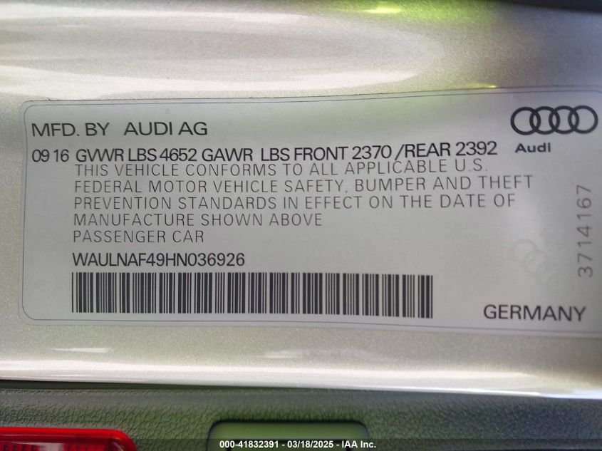 2017 AUDI A4 2017 року Бензин, 2.0, Передний привод, vin - WAULNAF49HN****** из США