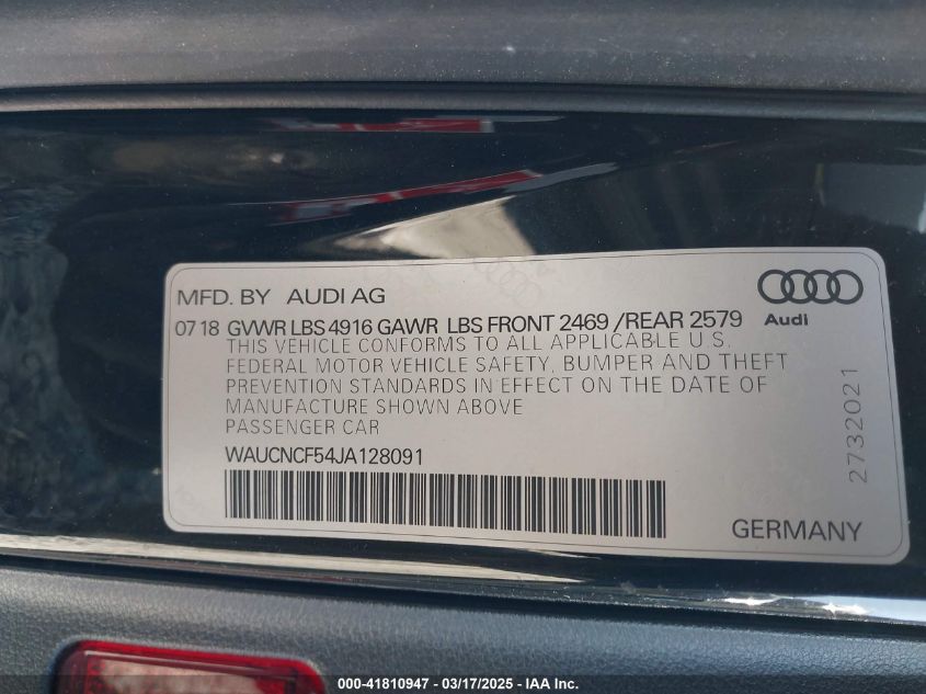 2018 AUDI A5 2018 року Бензин, 2.0, Полный привод, vin - WAUCNCF54JA****** из США