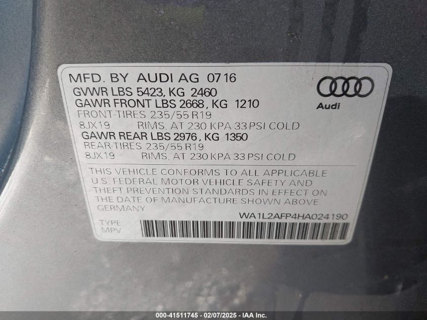 Цвет СерыйЦилиндры 4Привод Полный приводVIN WA1L2AFP4HA******Состояние НеизвестноПовреждения Передняя левая AutoRIA