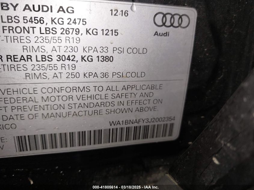 Цвет ЧерныйЦилиндры 4Привод Полный приводVIN WA1BNAFY3J2******Состояние НеизвестноПовреждения Передняя или задняя AutoRIA