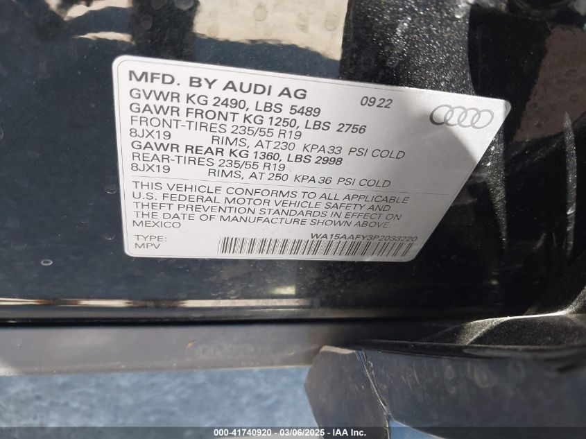 2023 AUDI Q5 SPORTBACK 2023 року Бензин, 2.0, Полный привод, vin - WA15AAFY3P2****** из США
