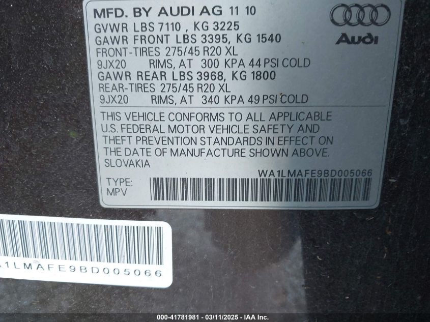 2011 AUDI Q7 2011 року Дизель, 3.0, Полный привод, vin - WA1LMAFE9BD****** из США