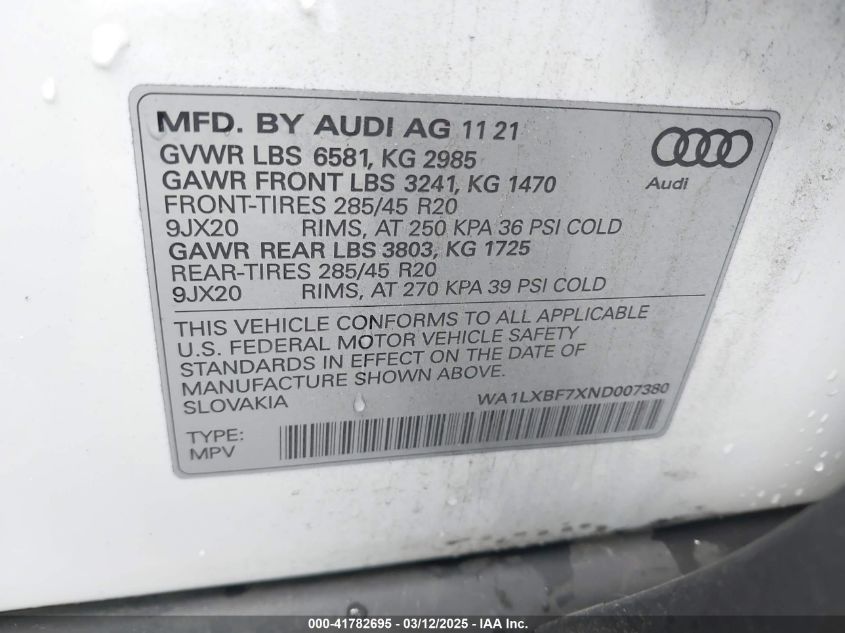 2022 AUDI Q7 2022 року Бензин, 3.0, Полный привод, vin - WA1LXBF7XND****** из США