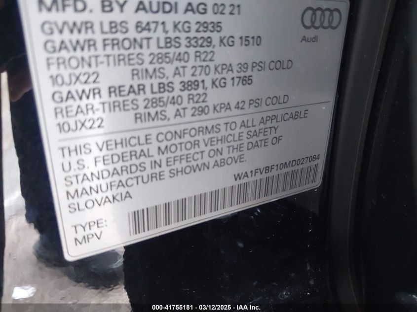 2021 AUDI Q8 2021 року Бензин, 3.0, Полный привод, vin - WA1FVBF10MD****** из США