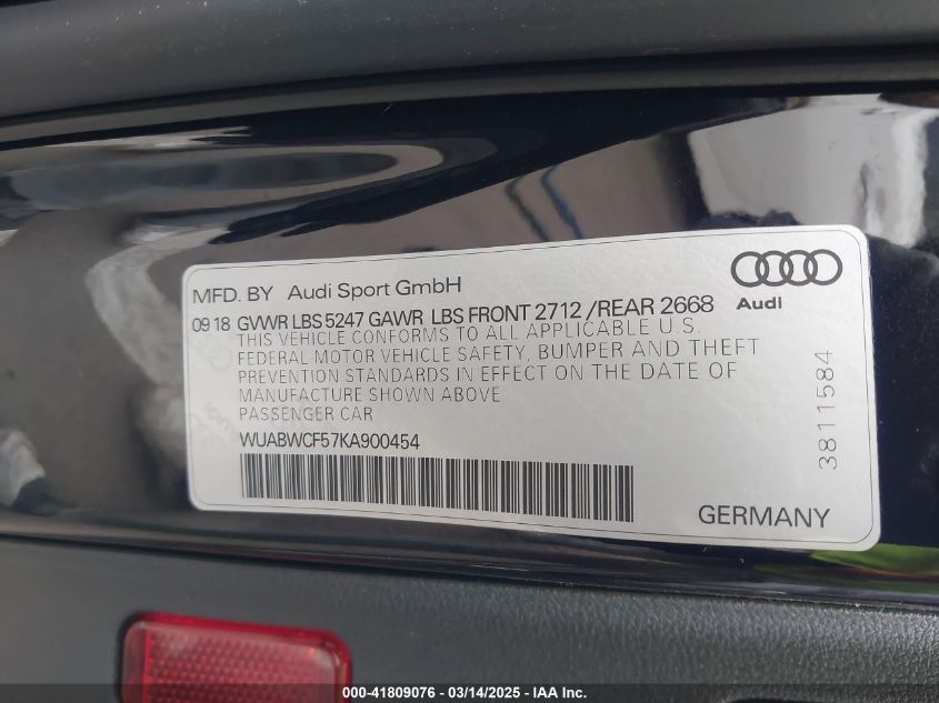 2019 AUDI RS5 2019 року Бензин, 2.9, Полный привод, vin - WUABWCF57KA****** из США