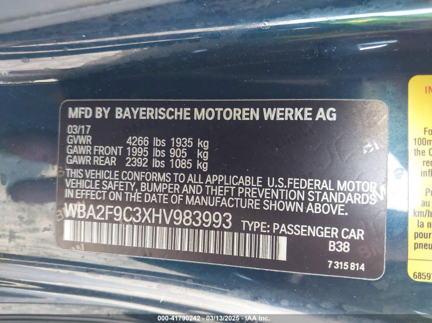 2017 BMW 2 SERIES 2017 року Бензин, 2.0, Задний привод, vin - WBA2F9C3XHV****** из США