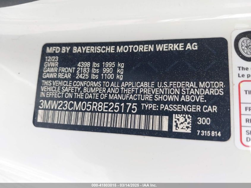 2024 BMW 2 SERIES 2024 року Бензин, 2.0, Задний привод, vin - 3MW23CM05R8****** из США