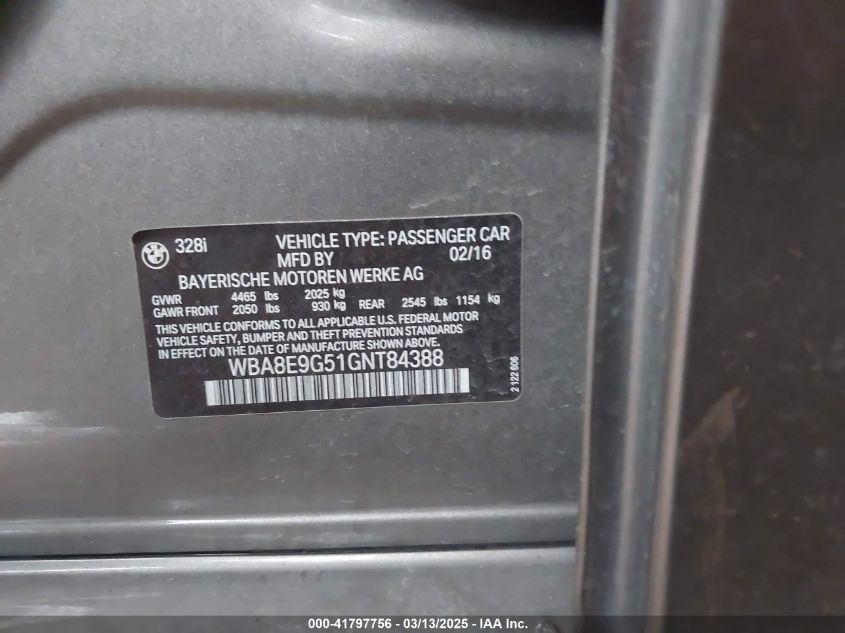 2016 BMW 3 SERIES 2016 року Бензин, 2.0, Задний привод, vin - WBA8E9G51GN****** из США