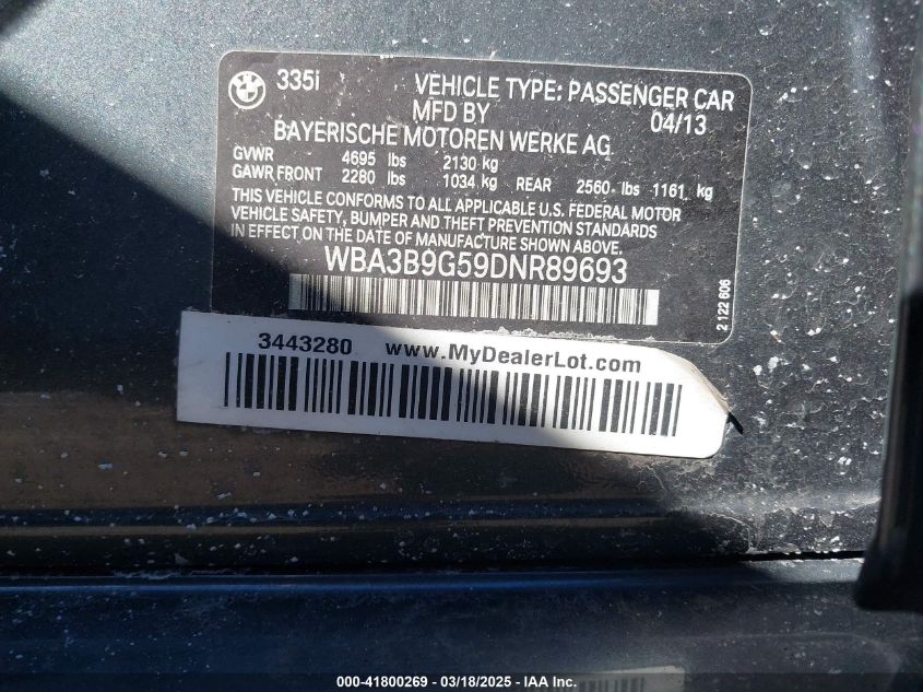 2013 BMW 3 SERIES 2013 року Бензин, 3.0, Полный привод, vin - WBA3B9G59DN****** из США