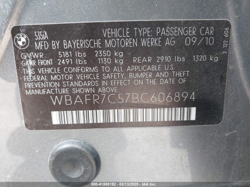 2011 BMW 5 SERIES 2011 року Бензин, 3.0, Задний привод, vin - WBAFR7C57BC****** из США