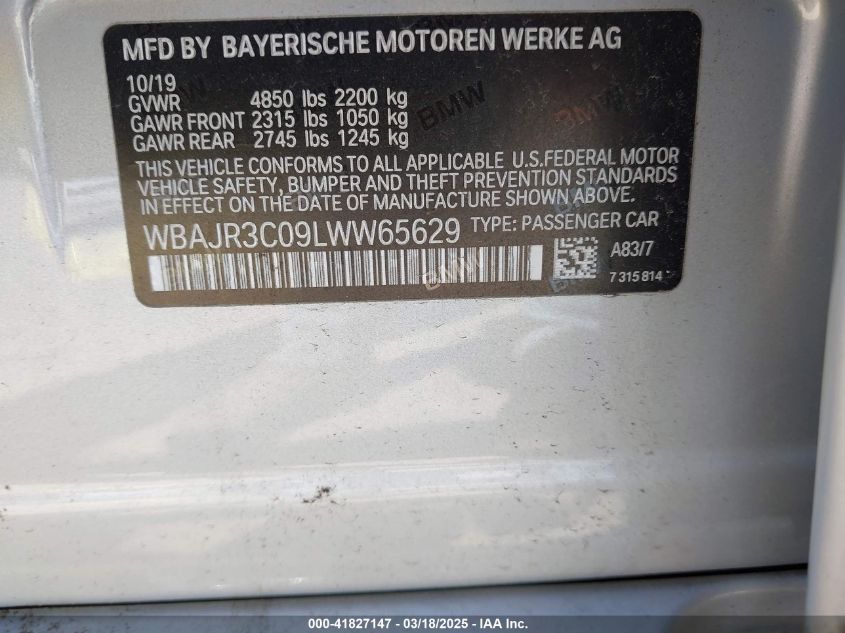 2020 BMW 5 SERIES 2020 року Бензин, 2.0, Задний привод, vin - WBAJR3C09LW****** из США