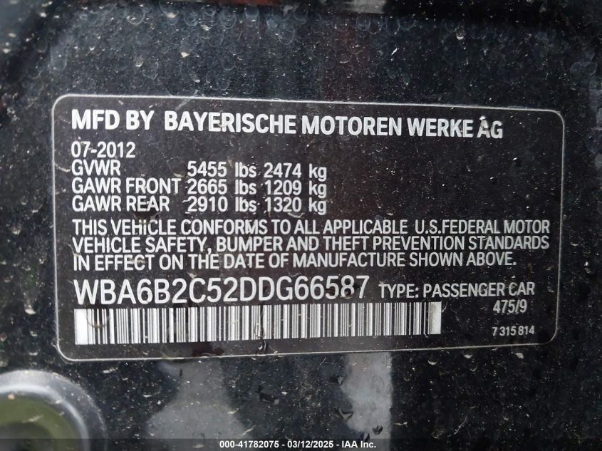 2013 BMW 6 SERIES GRAN COUPE 2013 року Бензин, 4.4, Задний привод, vin - WBA6B2C52DD****** из США