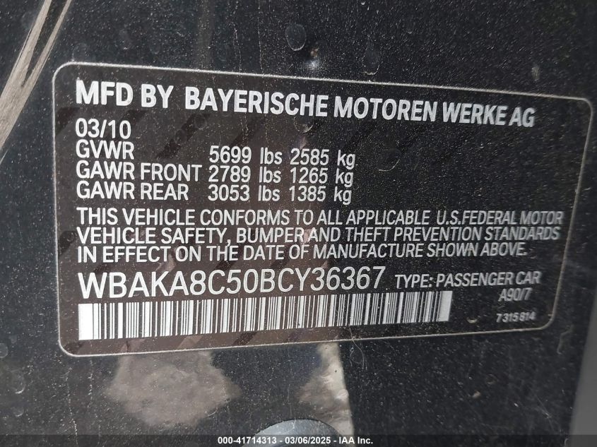 2011 BMW 7 SERIES 2011 року Бензин, 4.4, Задний привод, vin - WBAKA8C50BC****** из США