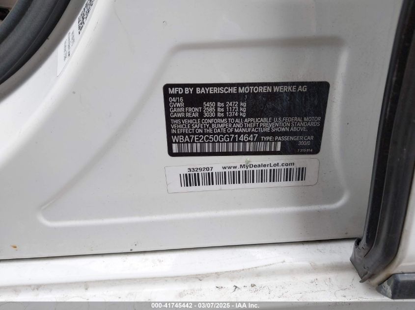 2016 BMW 7 SERIES 2016 року Бензин, 3.0, Задний привод, vin - WBA7E2C50GG****** из США