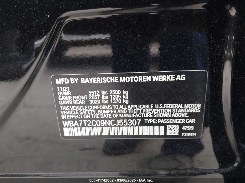 2022 BMW 7 SERIES 2022 року Бензин, 3.0, Задний привод, vin - WBA7T2C09NC****** из США