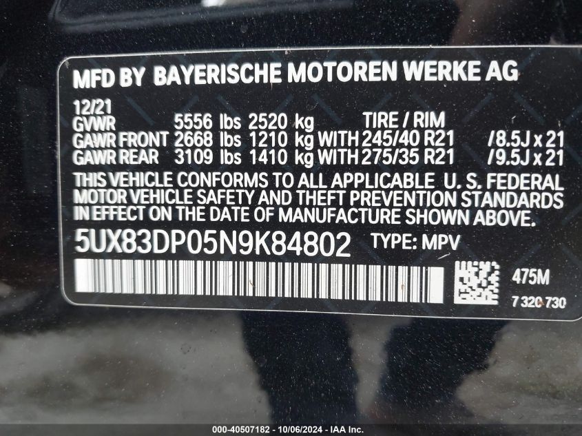 2022 BMW X3 2022 року Бензин, 3.0, Полный привод, vin - 5UX83DP05N9****** из США