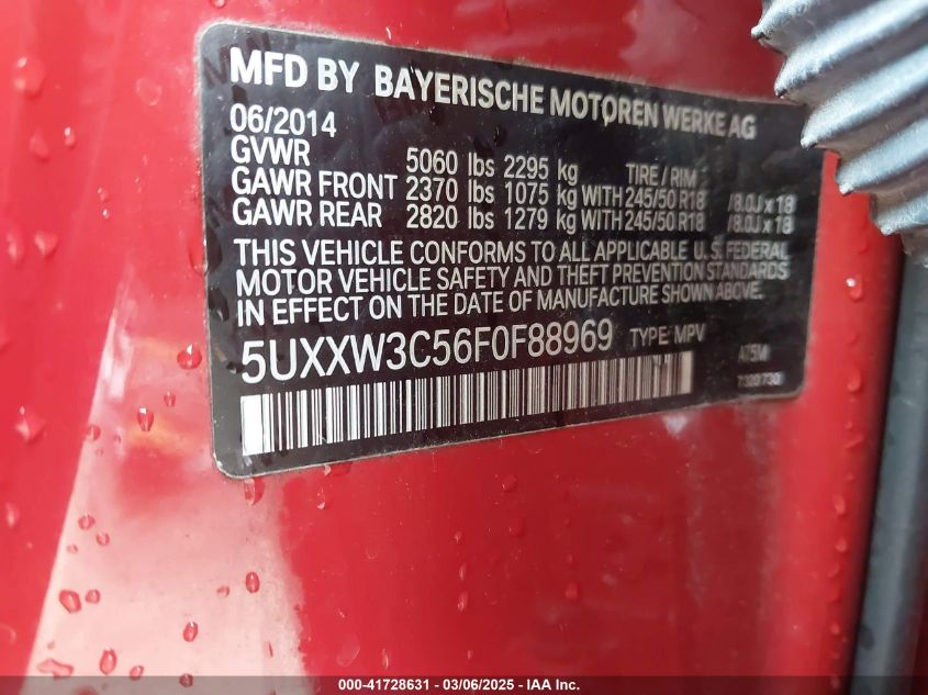 2015 BMW X4 2015 року Бензин, 2.0, Полный привод, vin - 5UXXW3C56F0****** из США