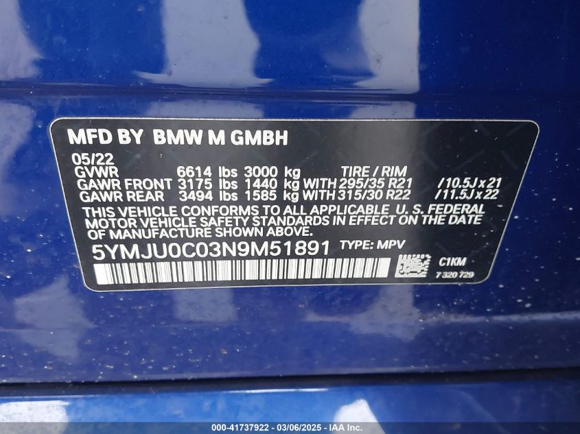 2022 BMW X5 M 2022 року Бензин, 4.4, Полный привод, vin - 5YMJU0C03N9****** из США