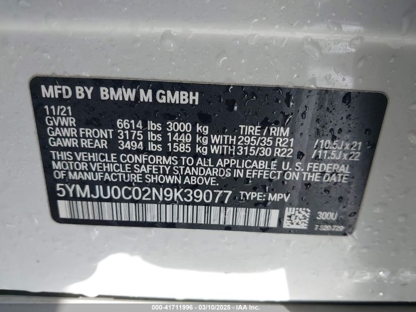 2022 BMW X5 M 2022 року Бензин, 4.4, Полный привод, vin - 5YMJU0C02N9****** из США