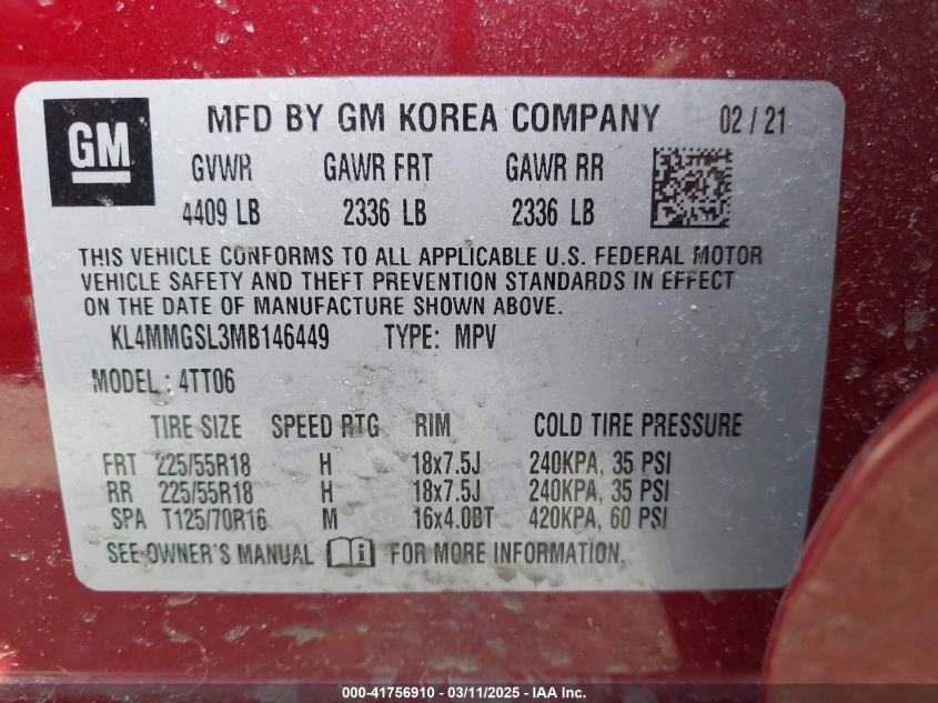 2021 BUICK ENCORE GX 2021 року Бензин, 1.3, Полный привод, vin - KL4MMGSL3MB****** из США