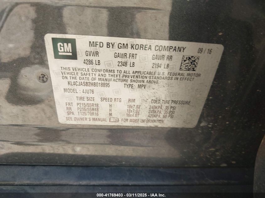 Цвет ЧерныйЦилиндры 4Привод Передний приводVIN KL4CJASB2HB******Состояние НеизвестноПовреждения Передняя или задняя AutoRIA