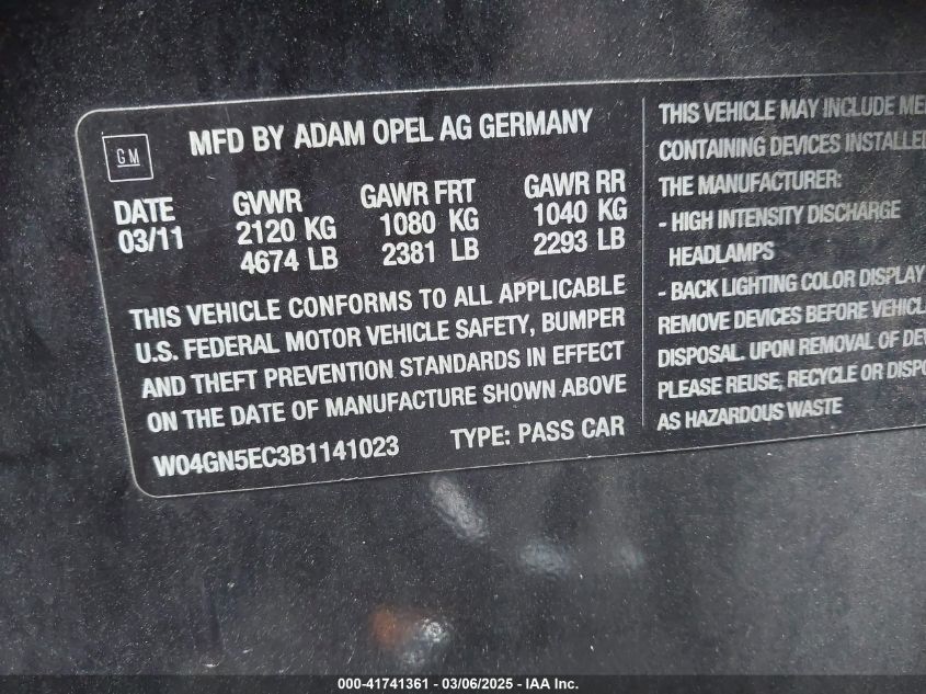 2011 BUICK REGAL 2011 року Бензин, 2.4, Передний привод, vin - W04GN5EC3B1****** из США