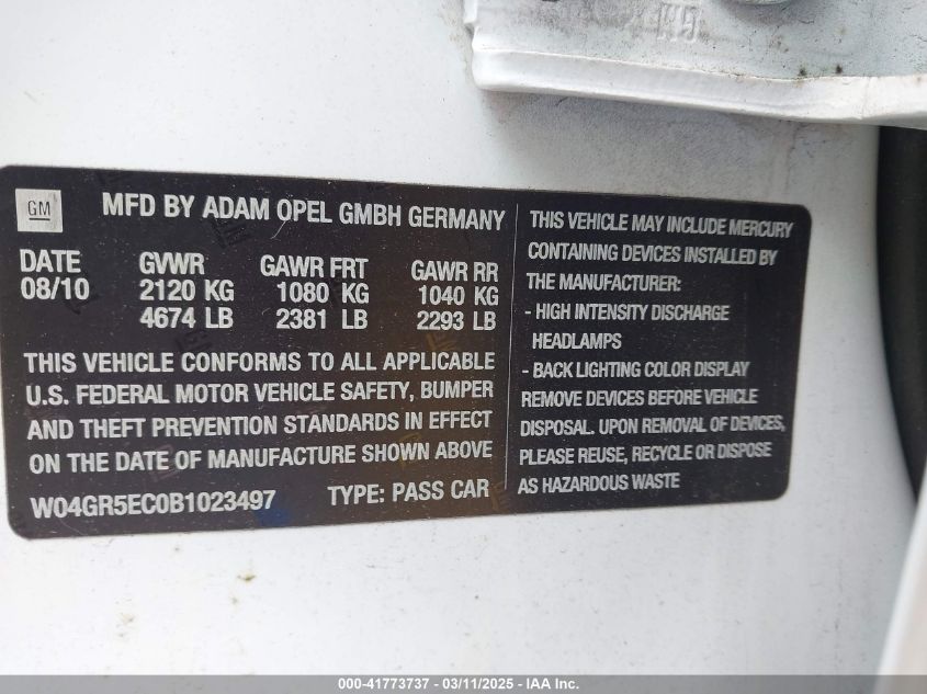2011 BUICK REGAL 2011 року Бензин, 2.4, Передний привод, vin - W04GR5EC0B1****** из США