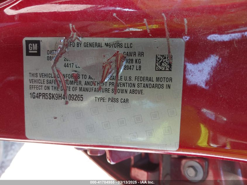 2017 BUICK VERANO 2017 року Бензин, 2.4, Передний привод, vin - 1G4PR5SK9H4****** из США