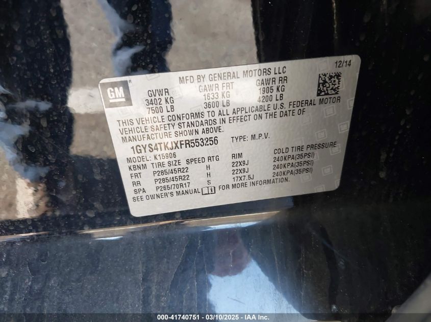 2015 CADILLAC ESCALADE 2015 року Бензин, 6.2, Полный привод, vin - 1GYS4TKJXFR****** из США