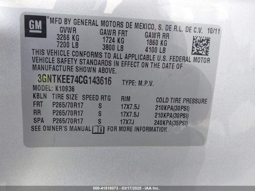 2012 CHEVROLET AVALANCHE 2012 року Бензин, 5.3, Полный привод, vin - 3GNTKEE74CG****** из США