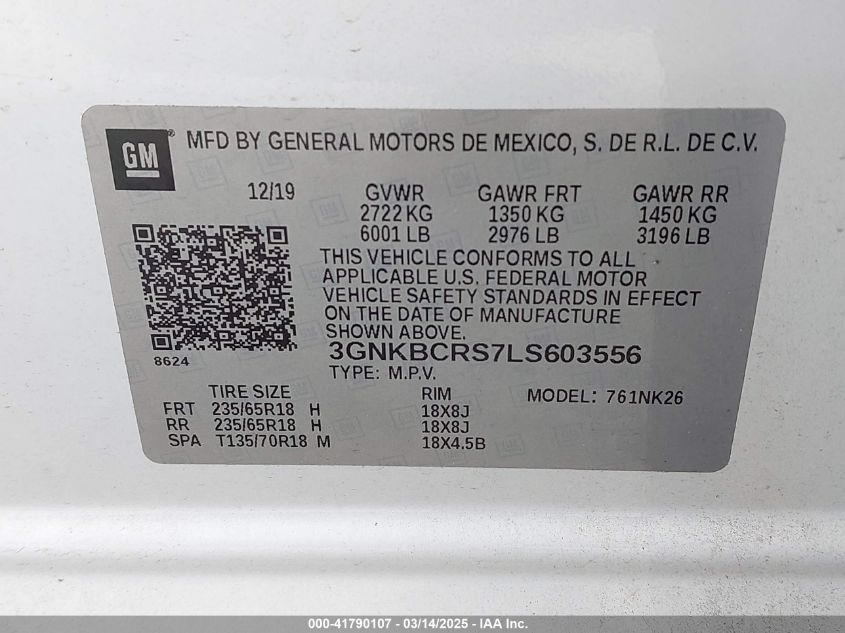 2020 CHEVROLET BLAZER 2020 року Бензин, 3.6, Передний привод, vin - 3GNKBCRS7LS****** из США