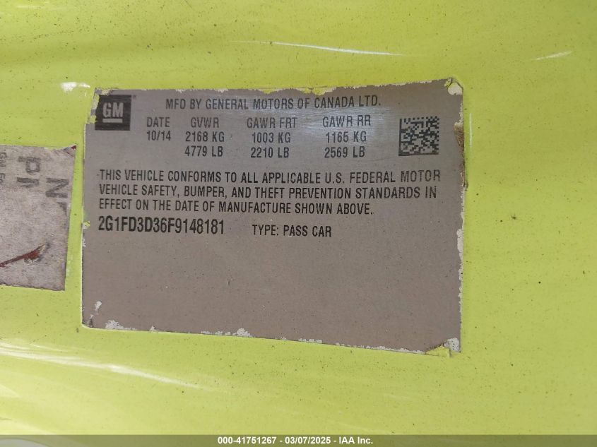 2015 CHEVROLET CAMARO 2015 року Бензин, 3.6, Задний привод, vin - 2G1FD3D36F9****** из США