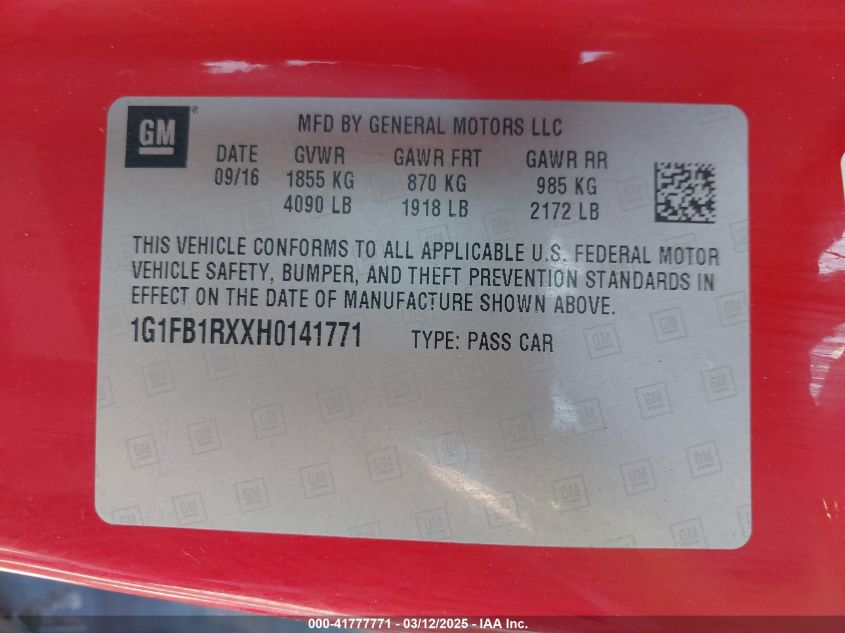 Цвет КрасныйЦилиндры 4Привод Задний приводVIN 1G1FB1RXXH0******Состояние НеизвестноПовреждения Передняя или задняя AutoRIA