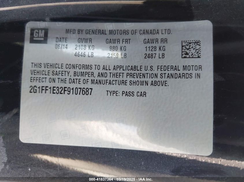 2015 CHEVROLET CAMARO 2015 року Бензин, 3.6, Задний привод, vin - 2G1FF1E32F9****** из США