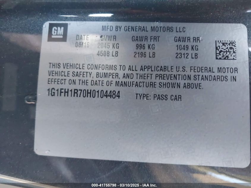 2017 CHEVROLET CAMARO 2017 року Бензин, 6.2, Задний привод, vin - 1G1FH1R70H0****** из США