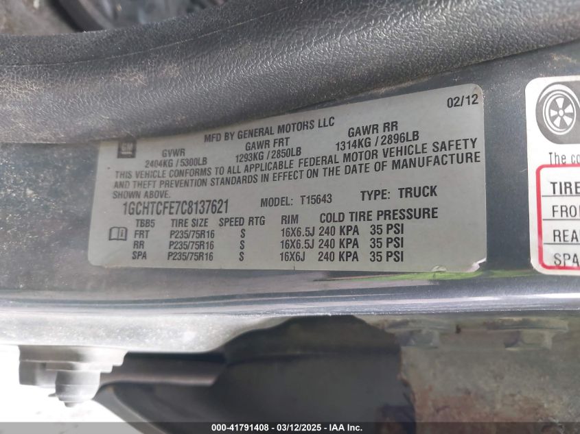Цвет СерыйЦилиндры 5Привод Полный приводVIN 1GCHTCFE7C8******Состояние НеизвестноПовреждения Правая сторонаДата аукциона 2025-03-25
