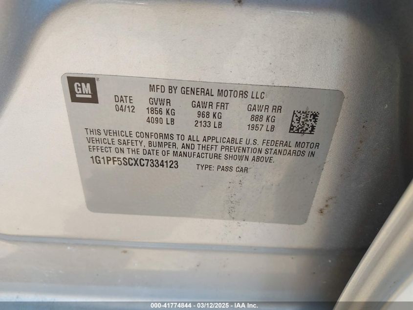 Цвет СеребряныйЦилиндры 4Привод Передний приводVIN 1G1PF5SCXC7******Состояние НеизвестноПовреждения Передняя правая AutoRIA