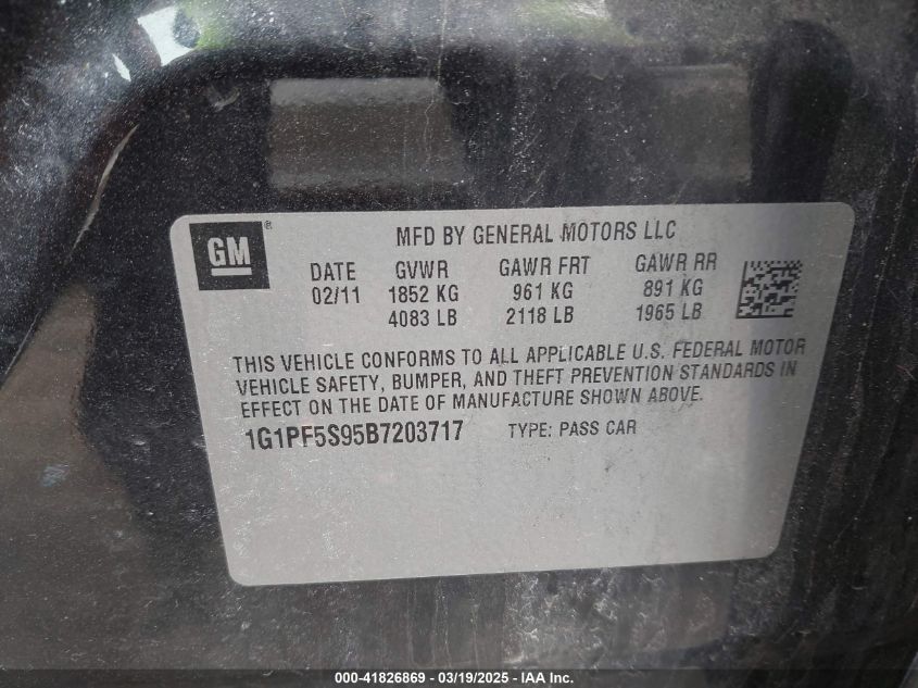 2011 CHEVROLET CRUZE 2011 року Бензин, 1.4, Передний привод, vin - 1G1PF5S95B7****** из США