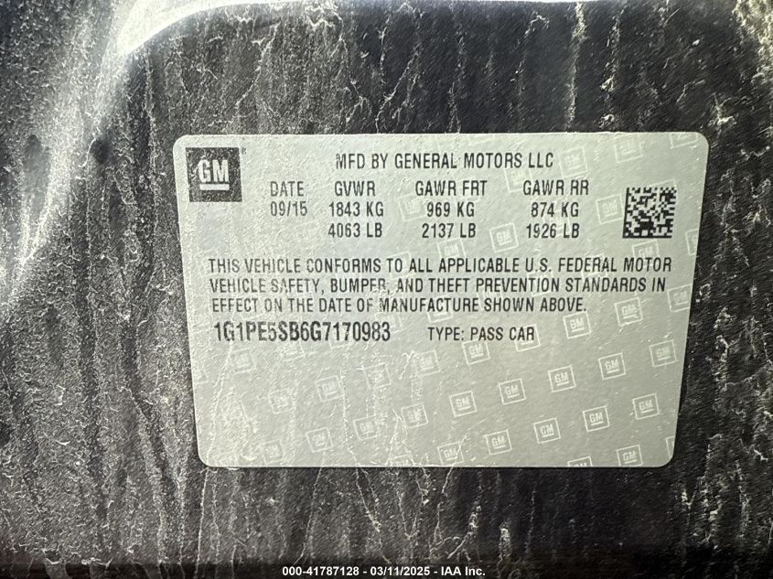 Цвет Цилиндры 4Привод Передний приводVIN 1G1PE5SB6G7******Состояние НеизвестноПовреждения Передняя или задняя AutoRIA