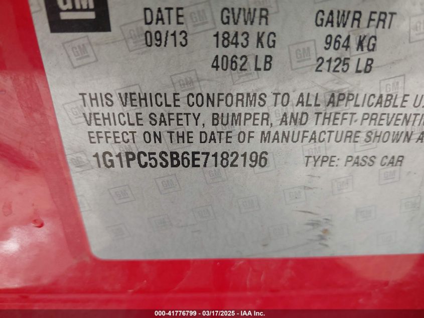 2014 CHEVROLET CRUZE 2014 року Бензин, 1.4, Передний привод, vin - 1G1PC5SB6E7****** из США