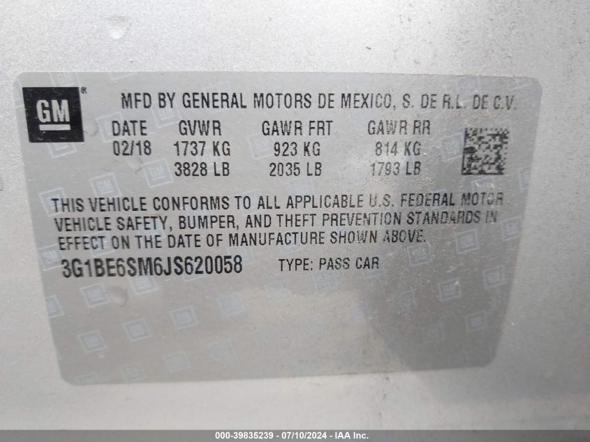 2018 CHEVROLET CRUZE 2018 року Бензин, 1.4, Передний привод, vin - 3G1BE6SM6js****** из США