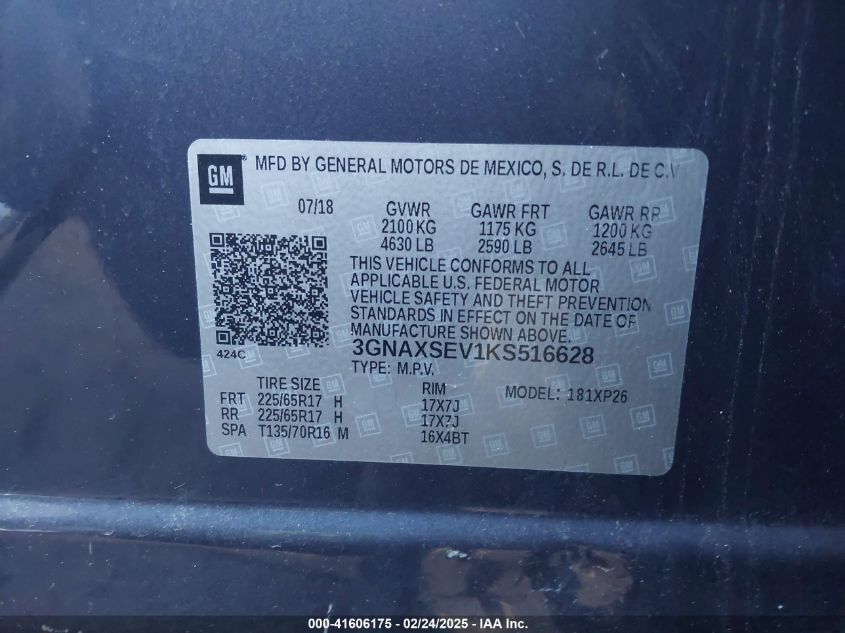 Цвет СинийЦилиндры 4Привод Полный приводVIN 3GNAXSEV1KS******Состояние НеизвестноПовреждения Задняя AutoRIA